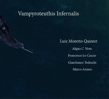 Il calamaro vampiro del titolo e della foto in copertina è una creatura delle profondità degli abissi marini il cui nome deriva dal suo aspetto di incappucciato che gira per l´oscurità alla ricerca di cibo che cade dalle superfici degli oceani. La musica invece ha molto di solare, un incontro positivo fra il violinista brasiliano Luiz Moretto/, presente in alcuni brani alla rabeca, un tipo violino usato nella musica tradizionale del suo paese, ed il connazionale Alipio C Neto ai sassofoni tenore e soprano insieme ad una ritmica italiana costituita da Francesco Lo Cascio al vibrafono, Gianfranco Tedeschi al contrabbasso e Marco Ariano alla batteria. La musica del gruppo italo-brasiliano è piuttosto accattivante, abile nel mettere assieme la tradizione del free, ad esempio il Revolutionary Ensemble di Leroy Jenkins, con i suoni che provengono dall´Africa e che lui ha studiato in Portogallo ed il Brasile. Il vibrafono di Lo Cascio diventa uno strumento che dà un particolare colore all´incisione, sulle orme di un Karl Berger, un ottimo esempio è il suo intervento su Refrações Geométricas, perfettamente integrato con il leader. I momenti improvvisativi, le aggregazioni degli strumenti, il sax soprano di Neto (ad esempio sul brano che dà il titolo al disco), sono ben gestiti dalla mano compositiva del leader, la sua scrittura dà spazio ai sidemen ed evita che si vada verso momenti confusi o poco incisivi. La gestione del flusso sonoro è perfetta così che la musica scorre fluida, coerente ma senza ripetizioni, perfettamente interpretata da una band che ha tutti i numeri per acquisire nel genere una dimensione internazionale. Fra i brani più riusciti il nervoso Saturnia, qui ha modo di mettersi in vista il batterista in un passaggio in duo insieme al sax soprano di Neto. Anche l´iniziale Espiral do Tempo e il finale di Terras de Arroz e Açúcar sono dei brani che hanno quel qualcosa di speciale nell´ambito di quella che è l´avanguardia odierna per come funzionano le relazioni all´interno del quintetto e l´empatia con il sassofonista. Un gruppo che conferma la buona vena di Moretto e Neto, sicuramente due musicsti molto interessanti, e di chi in Italia si dedica all´avanguardia.